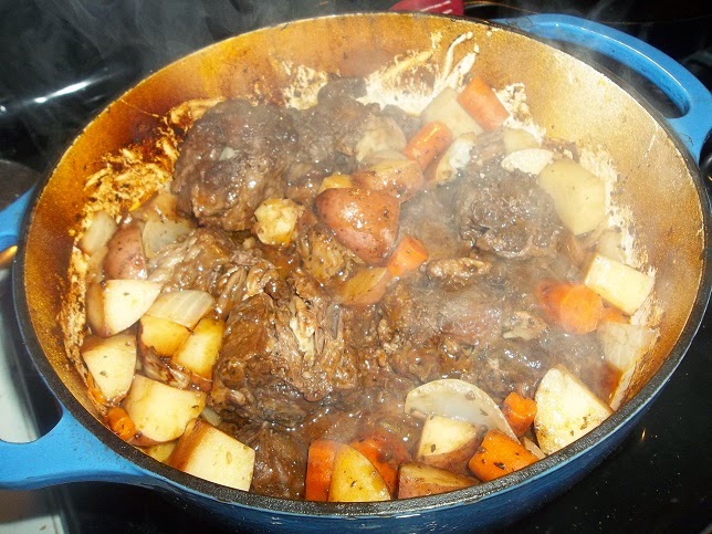 Add the oven, carrots and potatoes to the pot. Cover and simmer until the potatoes are soft - roughly 15 to 20 minutes. Scrape the meat from the oxtail bones.